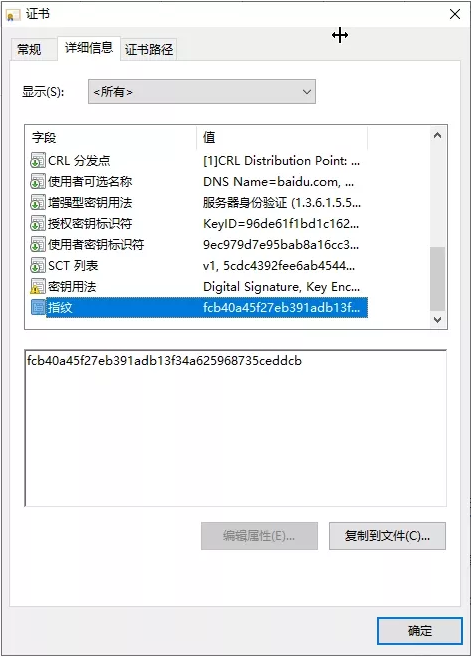 这里我们把百度的证书下载下来看看: