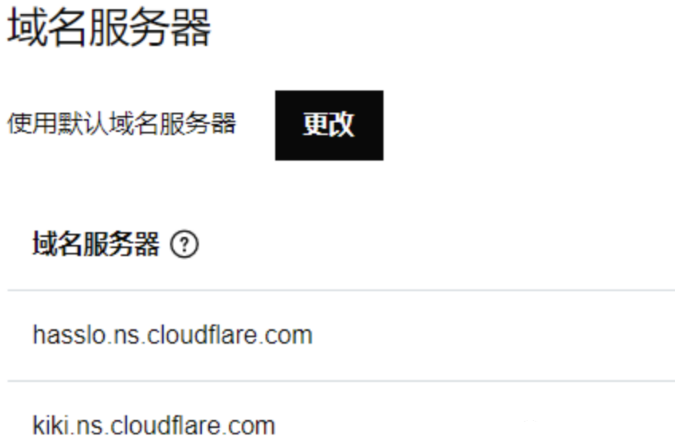 然后到你的域名商控制台,将域名服务器更换成 cloudflare 提供的域名服务器。