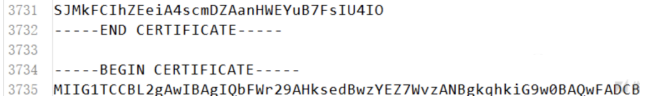 将 fullchain.pem追加到 ca-bundle.crt,需要注意不能直接复制保存,而是在每一个证书开头加一个换行。