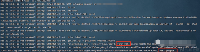 通过发送邮件查看日志测试 SSL 验证。