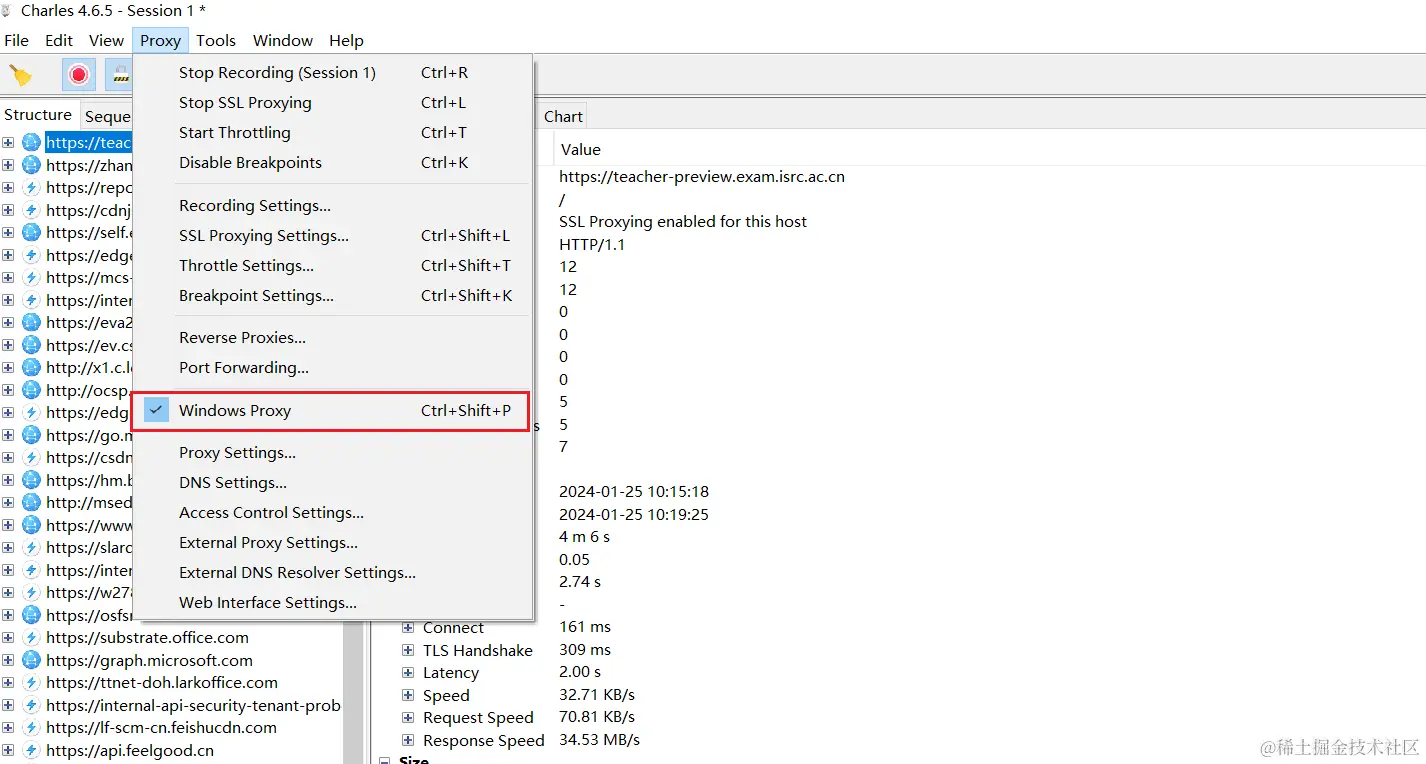 抓取当前电脑的HTTP请求,勾选Windows Proxy