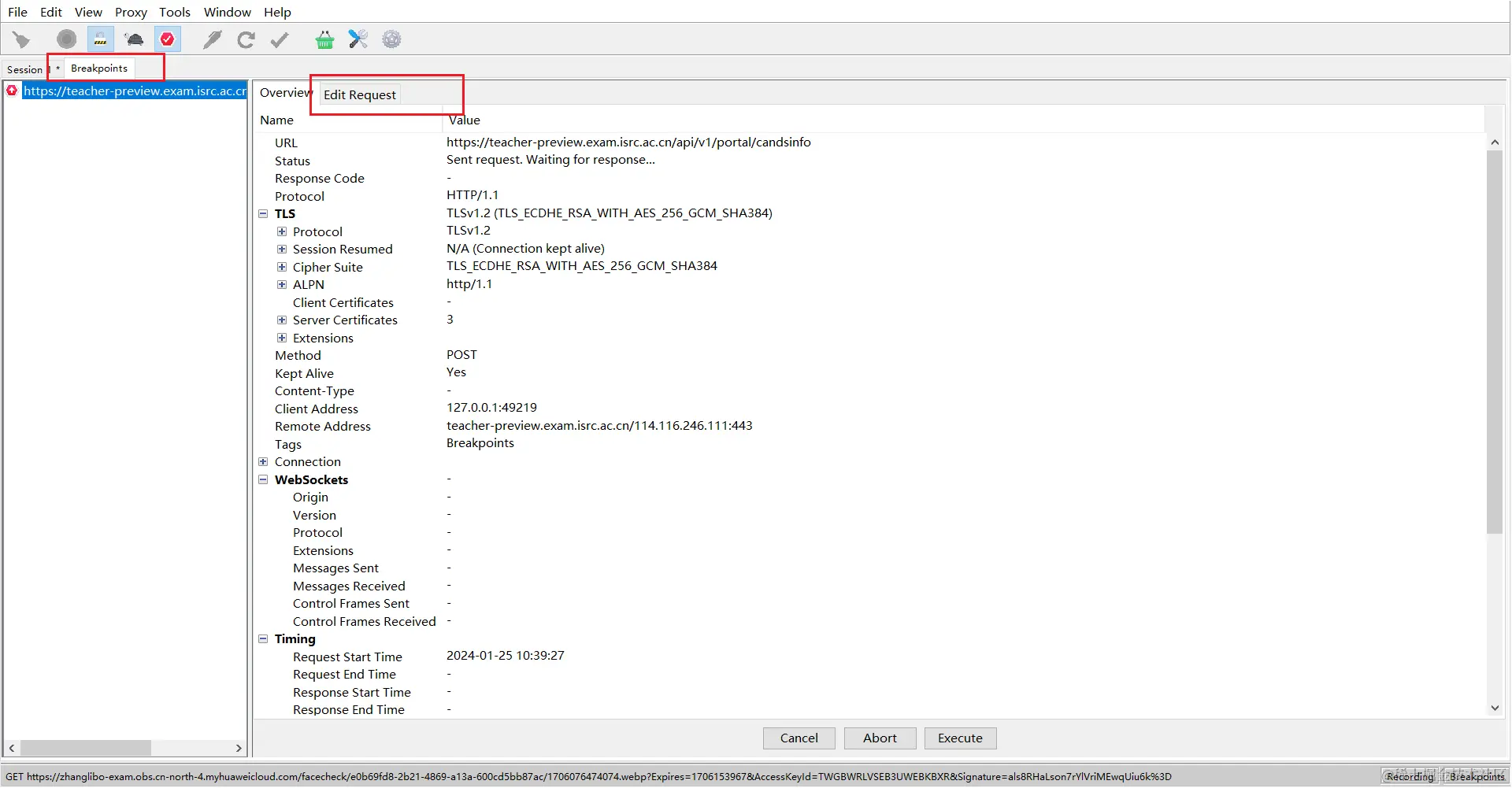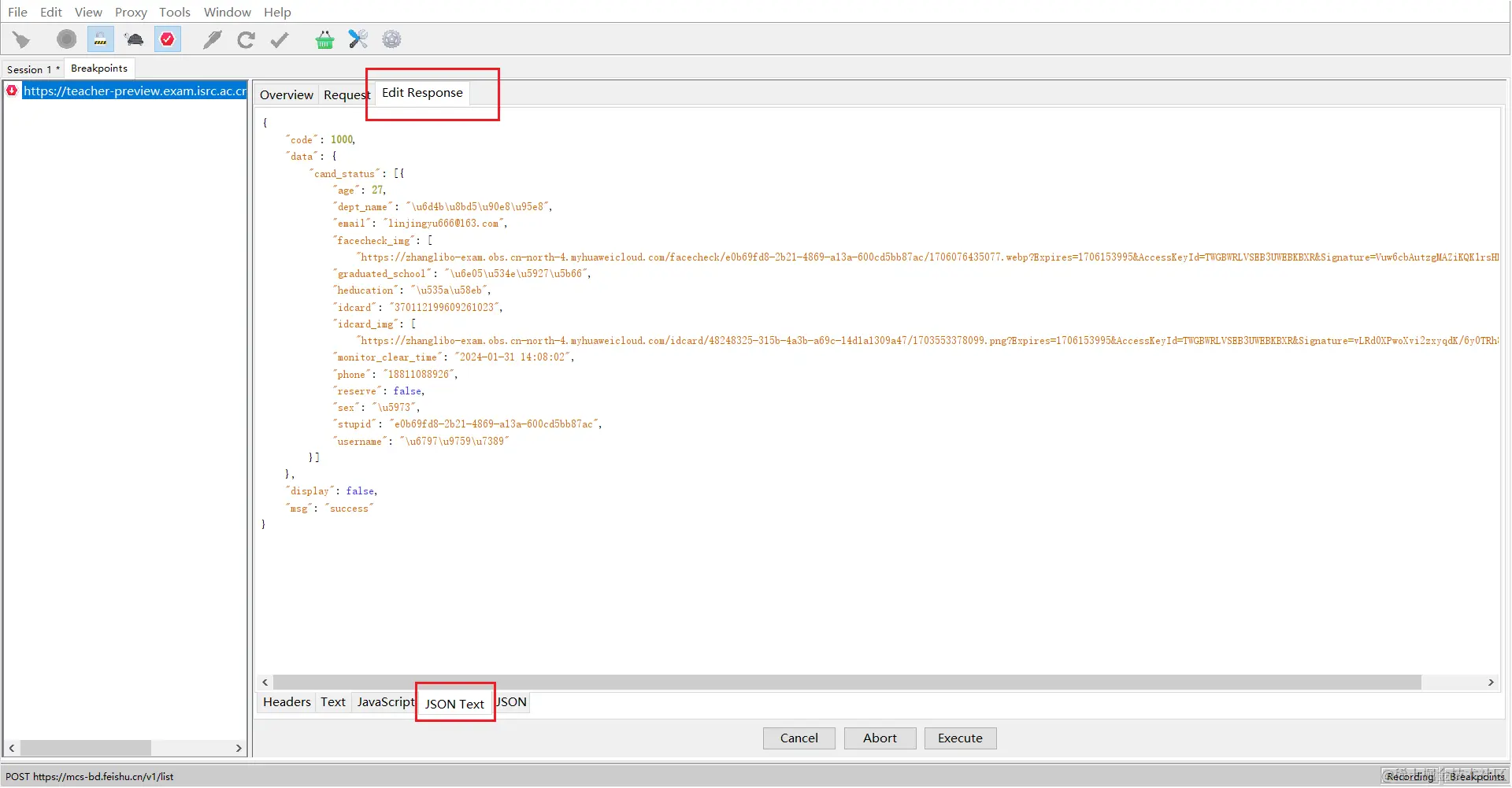 修改接口请求数据,使用Edit Request;不修改点击Cancel等待接口请求后的返回,