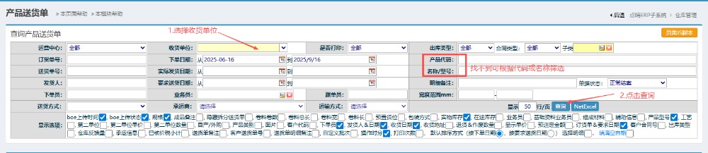 6.进入界面后,按图操作:点击选择收货客户,然后再点击查询