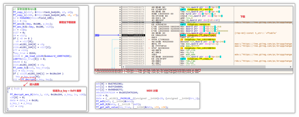 下载推广模块:任务开始后首先解密 task_body64 字段值(该解密算法采用的是 AES 算法并搭配非标准密钥流),获取到下载链接 ime.gtimg.com/pc/brspgc 并开始下载,下载完毕后,运用 MD5 算法计算所得 MD5 值,并与 task_body_md5 进行比对,以确认二者是否一致。