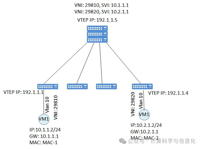 在VXLAN环境中,二层网关(L2 Gateway)用于连接不同的VXLAN网络,提供二层数据转发。而三层网关(L3 Gateway)则负责处理跨VXLAN网络的路由功能,允许不同的VNI间进行三层通信。
