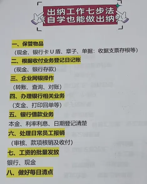 首先要明确,出纳主要负责资金管理,像存放在保险柜里的现金,就由出纳掌管。其次,企业存于银行的款项、单位结算卡以及 U 盾,也都在出纳手中。此外,财务专用章同样由出纳保管,同时,出纳还需保管收据、支票等票据。