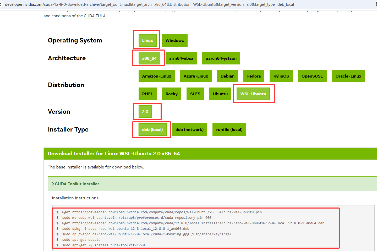 需在在wsl下Ubuntu中安装相版本的cuda-tookit,安装步骤如下: