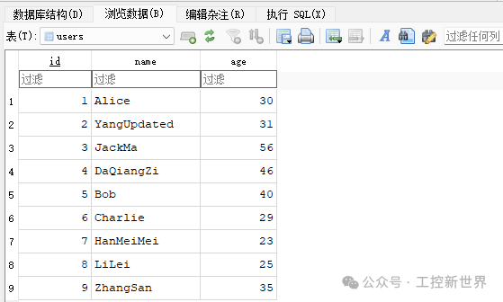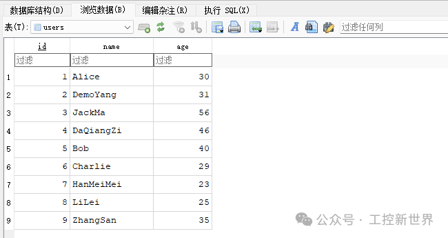 条件:只要 age >= 30 → 剩下 Bob(30)、Charlie(35)