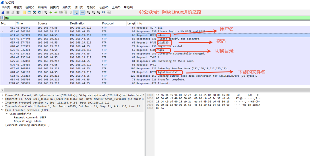 • PASS password明文密码(这是 FTP 极不安全的铁证)。