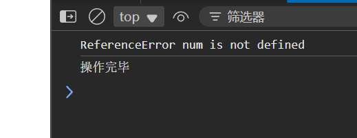 console.log(`异常类型=${e.name},异常原因=${e.message}`);        //异常类型=ReferenceError,异常原因=num is not defined