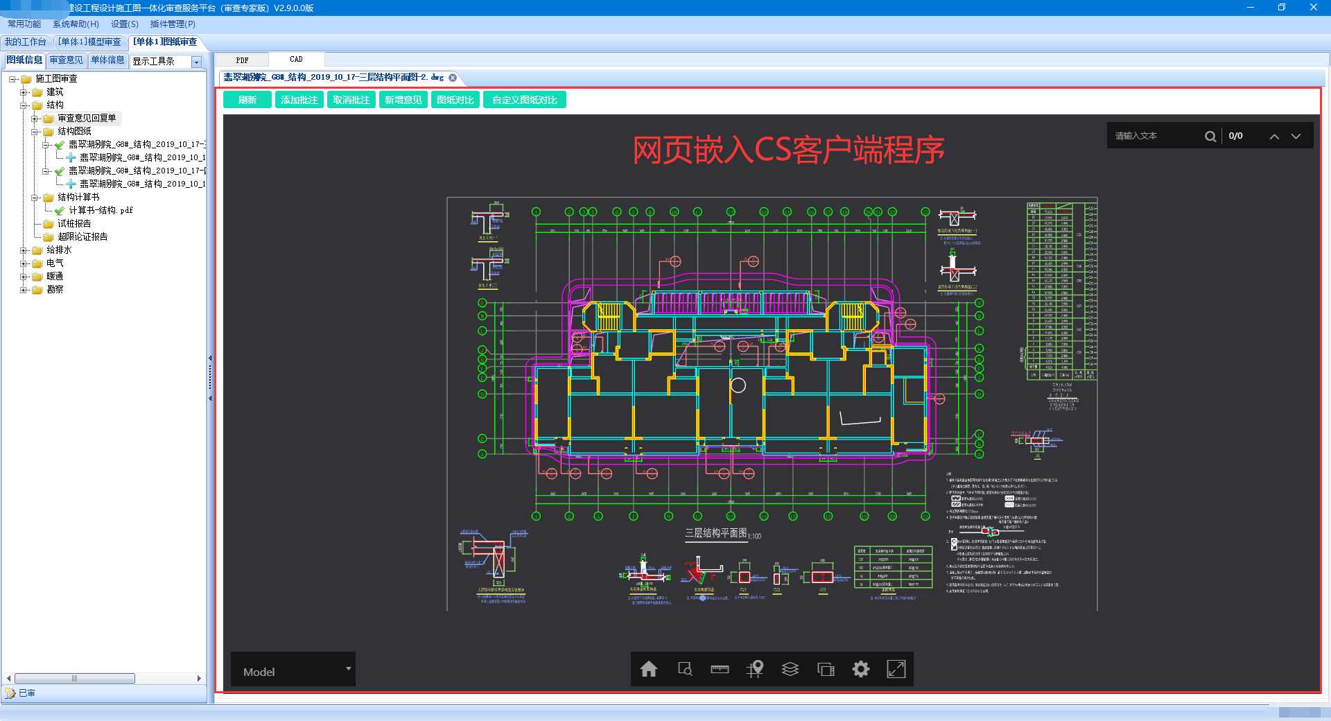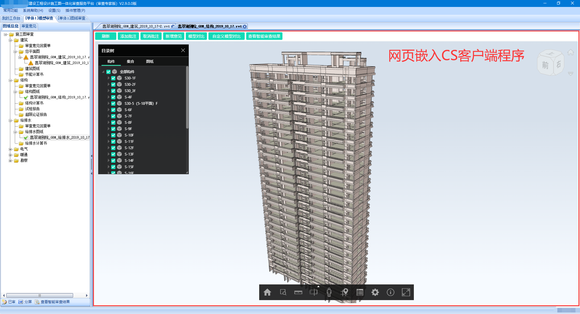B/S架构的Web程序几乎占据了应用软件的绝大多数市场,但是C/S架构的WinForm、WPF客户端程序依然具有很实用的价值,如设计类软件 AutoCAD与Autodesk Revit、WPS、IT类的集成开发环境(数据库、图形处理软件)、PC端的小工具等等,充分利用了客户端电脑的资源综合计算能力,处理性能更加优秀。如果想在C/S架构的客户端程序中集成Web应用,也只能借助Web网页,然后将网页集成到客户端程序中,这样就间接的达到了目的。下面是客户端审图系统中集成Web网页的实际应用案例