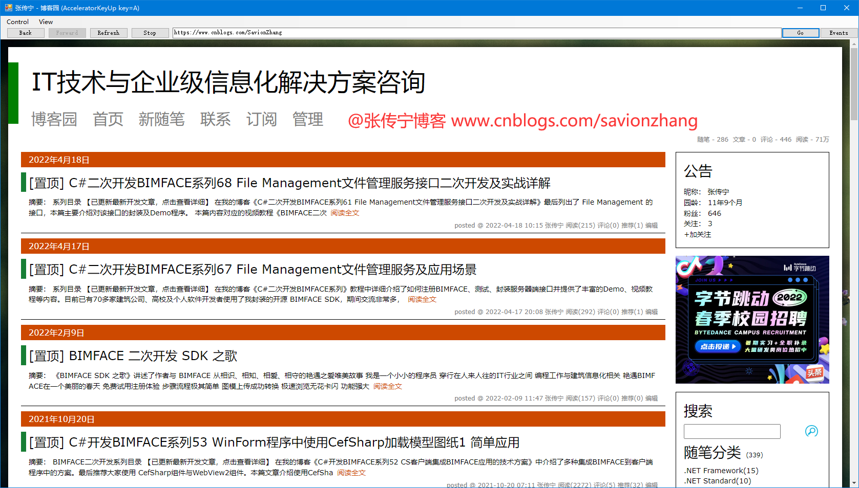下图是在Winform程序中使用WebView2组件加载我的博客园页面的效果